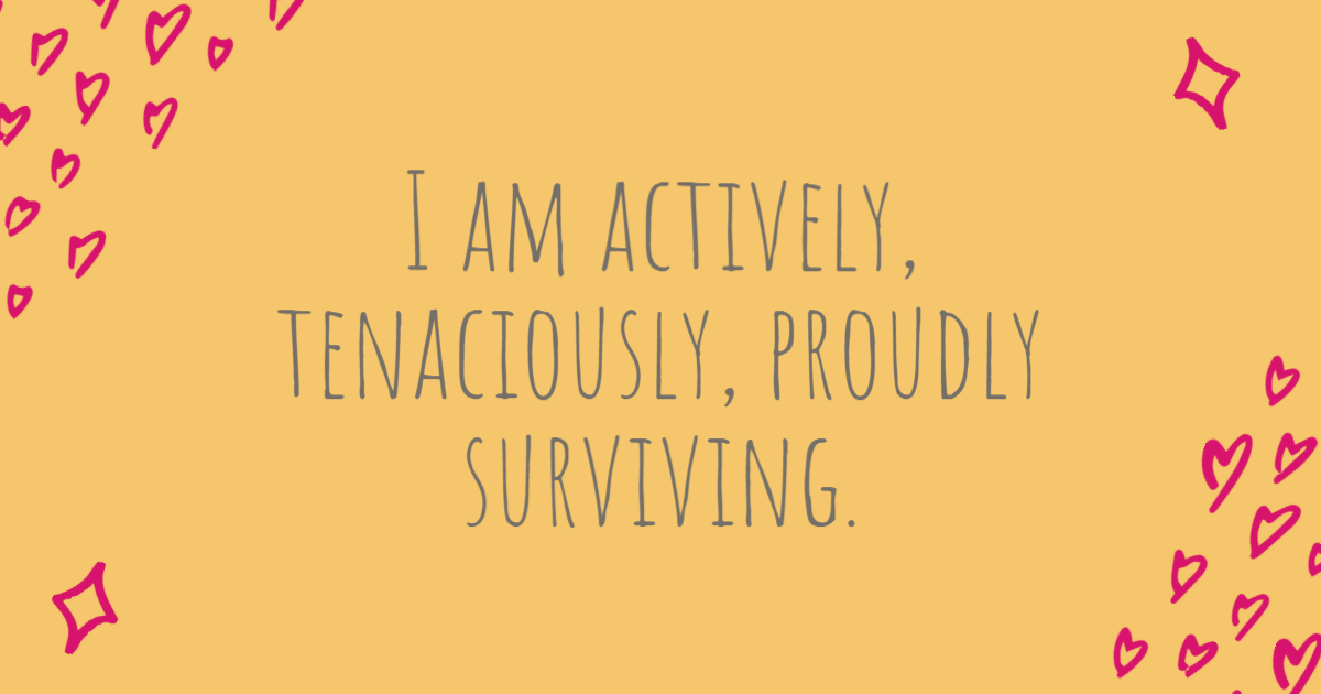 When I started trying to write this blog, I found it difficult to order my thoughts and articulate what I wanted to say. Plagued by my usual self-criticism, I complained to my partner about how useless I am and how I have never achieved anything. He looked at me incredulously and said, with tears in his eyes, that my survival is – and probably always will be – my biggest achievement. I was completely taken aback. No one had ever congratulated me on being alive before. I didn’t see my existence as something to be proud of. In fact, I felt ashamed that sometimes ‘all’ I seemed to do was survive from one day to the next.